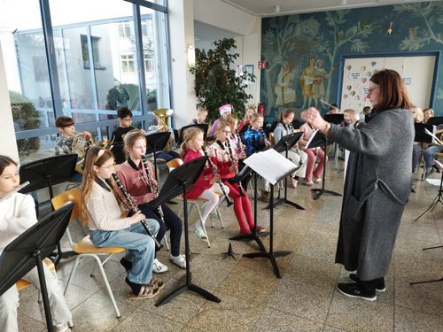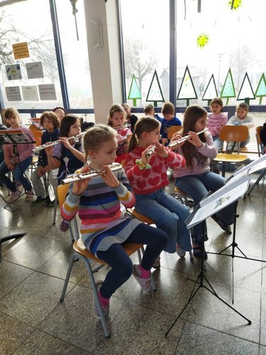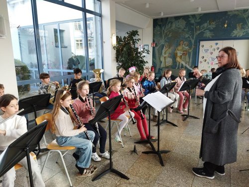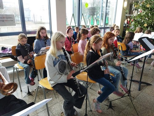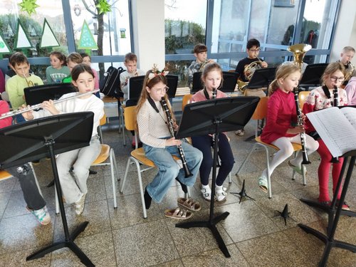 Der 18. Dezember stand ganz im Zeichen des Weihnachtskonzerts unserer Bläserklassen in der Grundschule Wertingen. Mit vielen bekannten Liedern erfreuten die Bläserklassen der 3. und 4. Jahrgangsstufe ihre Mitschüler und Lehrkräfte. Geleitet wurden die Klassen von Heike Mayr und Karolina Wörle.