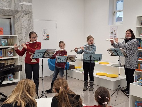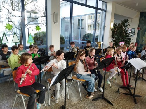 Am Samstag, 13. Dezember, waren erneut unsere Holzbläser unter der Leitung von Heike Mayr, Magdalena Polzer und Karolina Wörle in der Kreisbücherei im Einsatz.