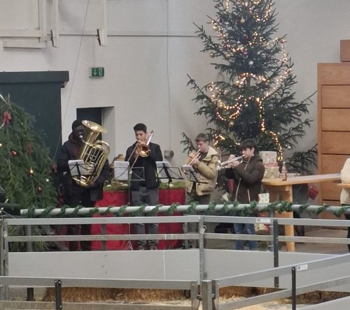 Der Samstag, 6. Dezember, war musikalisch besonders ereignisreich: Ein Blechbläserensemble der Musikschule spielte beim „KUHlen Weihnachtsmarkt“ in Geratshofen.