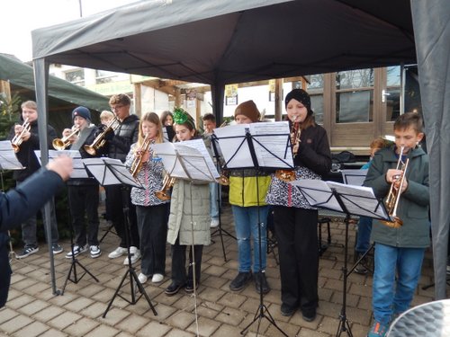Am Samstag vor dem 1. Advent folgte der Auftritt unserer Holz- und Blechbläser bei Garten Reiter. Rund 30 Schülerinnen und Schüler musizierten unter der Leitung von Tobias Schmid, Lea Lernhard, Heike Mayr und Karolina Wörle.