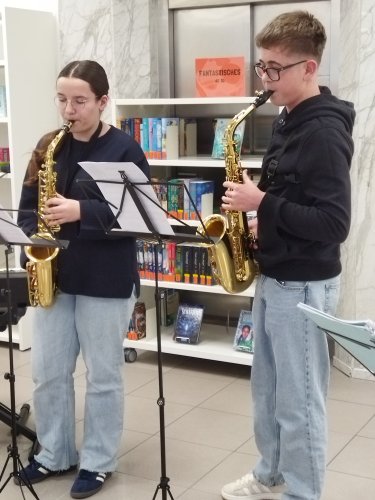 Am Donnerstag, 4. Dezember, umrahmte unser Klarinettenquartett eine Buchvorstellung in der Kreisbücherei Wertingen.