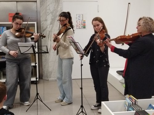 Am Nachmittag wirkten unsere Holzbläser (Leitung: Karolina Wörle), das Streicherensemble (Leitung: Krystyna Respondek-Hüttner) sowie eine Pianistin beim „Wertinger Märchenweg“ in der Kreisbücherei mit.