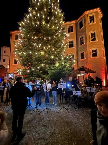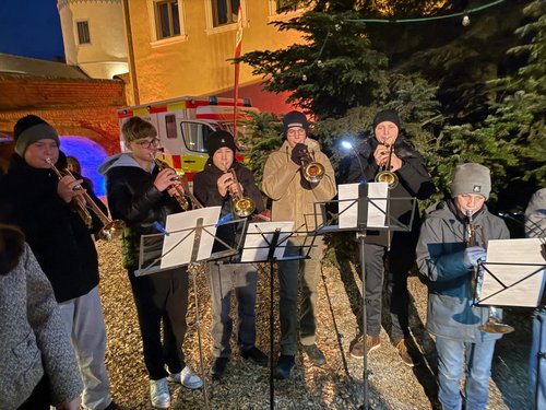 Einen Tag später, am Freitag, 5. Dezember, eröffneten unsere Blechbläser, unter der Leitung von Tobias Schmid, feierlich die Schloßweihnacht in Wertingen.
