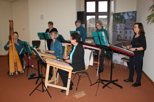 Neben den Bläsern bereichern auch die Pianistinnen Marlene und Linda Vesenmayer, Matrona Krug von Nidda und Schüler der Hackbrett- und Harfenklasse von Andrea Kratzer das Programm. Das Harfenduo Annika Giss und Evelina Günther und das Hackbrettensemble mit Irmgard Kratzer, Monika Wohl, Claudia Drachsler, Finny Tilp, Angelika Otto, Christine Ramsperger und Andrea Kratzer erweisen sich jedes Mal wieder, vor allem mit zusätzlichen Klangfarben der Blockflöte und der Okarina, als Garant für das Besondere.