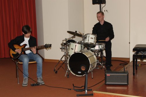 Nicht nur für Freude, sondern für Staunen und Begeisterung sorgte der 12-jährige E-Gitarrist Timo Horn, der von Kacper Bunkowski feinfühlig am Drumset begleitet wurde. Er hat sich beim „Wertinger Musikpreis“ mit einer perfekten Darbietung präsentiert und das Publikum beim Neujahrskonzert mit Rockmusik von Chuck Berry und Eddie van Halen in seinen Bann gezogen.