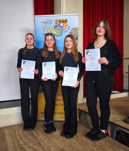 Die Spitzenreiter in der Wertung der Wertinger Musiker waren die Saxofonistin Sarah Wiedmann und die Querflötistin Sarah Steger mit 98 von 100 möglichen Punkten, dicht gefolgt von Sofia Steger, Marie Hertl und Emelie Tschan mit 96 Punkten. Das jüngste Ensemble mit den Klarinettistinnen Mette Dmoch, Matilda Gottmann und Florentine Brenneisen erhielt 95 Punkte für einen mitreisenden Vortrag. Sophia Steinle erspielte sich 94 Punkte, Franziska Brenneisen, Johanna Pfeiffer, Celina Bunk und Paul Feldengut 93 Punkte. Mit 92 Punkten wurden die Wertungen von Luisa Helget, Jonathan Strobel, Semina Köse, Emma Winkler und Jasmin Harlacher belohnt. Auch Laura Mayr, Florentine Brenneisen, Mia Zwetzich, Laura Büchele, Stefanie Geh, Quirin Knab, Isabell Kaucher, Maria Kehrle, Zäzilia Nowotny und Lavinia Günther erhielten einen ersten Preis mit ausgezeichnetem oder sehr gutem Erfolg.